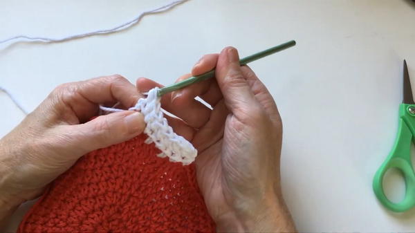 - At the end of the topper, chain 6 stitches or as many as necessary for your desired loop length.