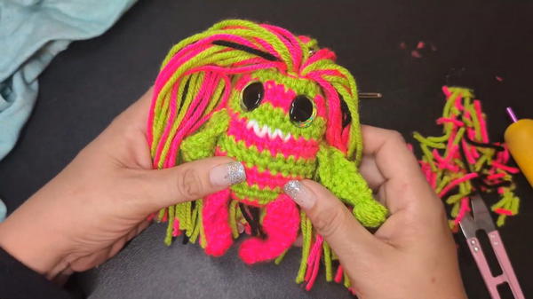 Octavia is a cute and unusual amigurumi octopus. This little octopus is crocheted from the top down and uses decreased stitches to shape the body. Tension in these decreased rows can be adjusted by prolonged work, accentuating his curly hair or working more loosely to achieve a fluffier appearance. Its body is worked from the top-down, but instead of making a long oval, Octavia is completed by working in rounds and then joining to form an hourglass shape. She has eight tentacles, each with just four rounds for small suckers and two larger ones for her big eyes. After shaping the tentacles, the beads can be added as you crochet to make them rounder, larger, or more colorful.