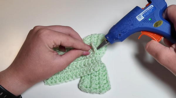 When wrapping the yarn around the center of the bow, keep the tension tight but balanced to ensure the bow holds its shape without puckering.