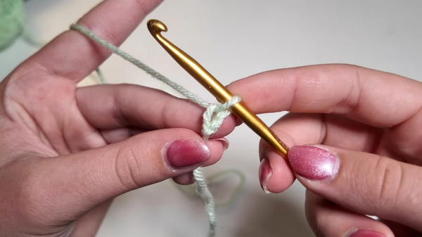 - Yarn over and pull the yarn through both loops on the hook to make a slip stitch, creating a ring of chains.