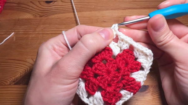 - At the corners, repeat the corner stitch sequence: 3 double crochets, chain 2, another 3 double crochets.