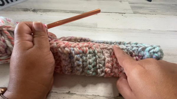 For each row, work single crochet stitches in the back loop only. This technique creates the ribbed, flexible design of the hat.