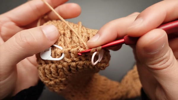 Remember to manage your thread tension carefully. Tighten when working on the head to keep the stuffing secure and loose when working on the scarf body to ensure a comfortable and flexible finish.