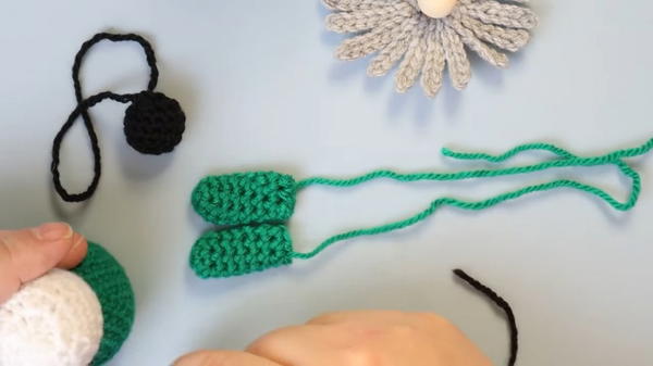 - Add 3 rounds of single crochet for height. Decrease to form the shape, stuff lightly, and attach to the bottom of the gnome.