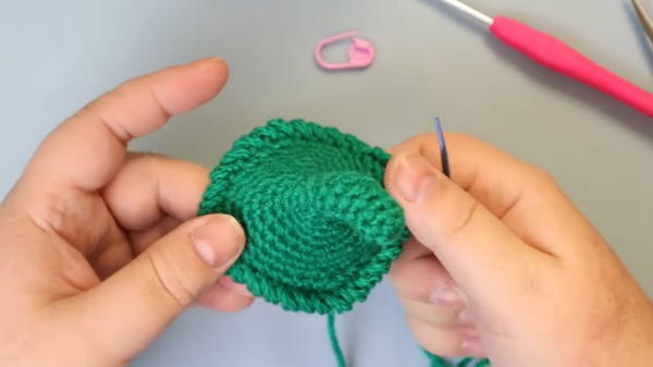 - Rounds 11-13: Decrease using 3 single crochet decreases. Continue stuffing as you go.
