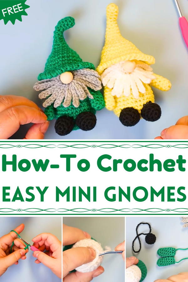 Add whimsical charm with this Free Crochet Mini Gnomes Pattern, shaping the hat, body, and beard, then finishing for a delightful festive touch.