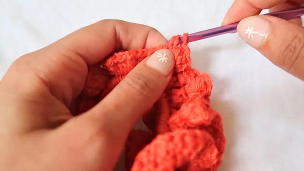 Next, rows of double crochet are introduced, forming cascading ruffles that build volume and texture. The final result is a soft, elegant design that enhances ponytails, buns, or even wristwear as stylish bracelets.