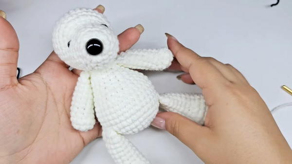 The process of making this adorable Snoopy figure is straightforward yet deeply satisfying. The pattern begins with crocheting the body, shaped through circular rows of single crochets, enhanced by gradual increases and decreases to achieve smooth, rounded contours.
