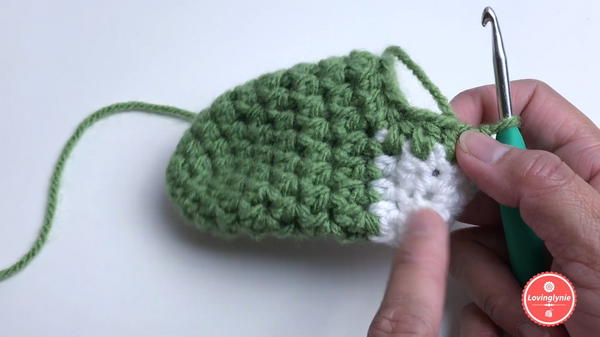 - Round 9: Start at the back of the heel and make 17 HDC stitches around.