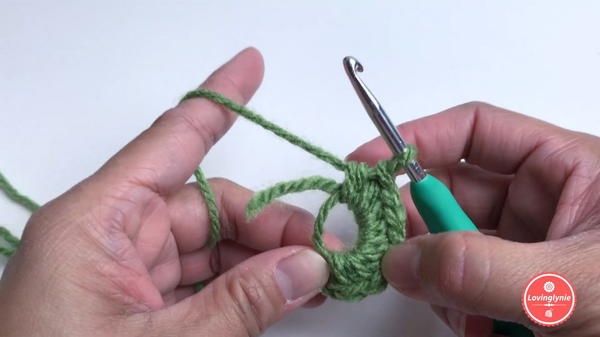 - Create 8 half-double crochet (HDC) stitches in the center of the loop.