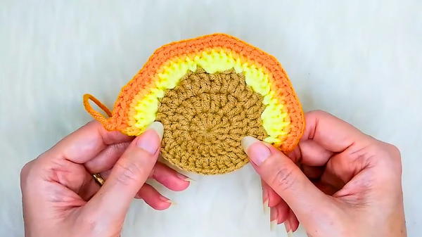 The body begins with a round base formed through basic stitches such as single and double crochet, expanded evenly to give it shape.
