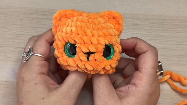 The head is shaped with precision, and details like a carefully embroidered nose, safety eyes, and pointed ears exude personality.