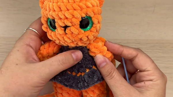 The process begins with crocheting two sturdy legs using the magic ring technique and gradually building the body with skillful increases, decreases, and rounds of single crochet.