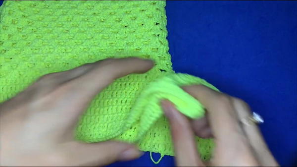 - Start at the leg opening marker, work dc stitches in rows (not rounds), making sure to keep stitch count consistent.