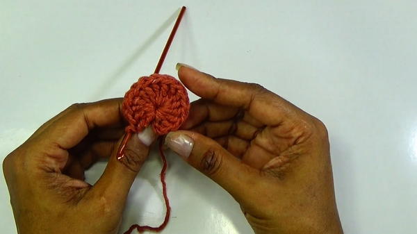 - Chain 3 (counts as first dc), work 14 more dc into the ring — total 15 dc.