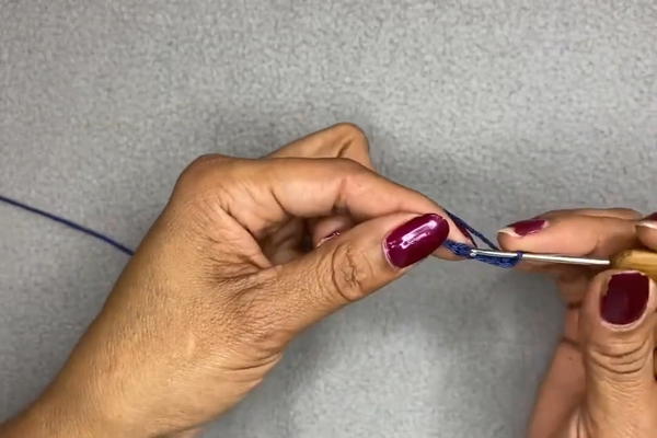 - Begin by tying an initial knot with your chosen yarn color (e.g., blue).