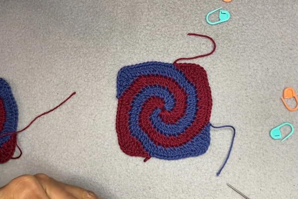 Crochet squares provide endless possibilities for creative projects, from blankets and cushions to decorative designs or wearable garments. The tutorial from the video lays out a detailed step-by-step approach to creating a colorful crochet square with precision and care. This pattern is beginner-friendly but requires patience due to its focus on transitions between colors and stitch types. The blend of wine red and blue yarn results in a visually striking design, making it both beautiful and functional for a variety of purposes. The tutor emphasizes neat finishes and marker placements to enhance efficiency and maintain clarity throughout the process.