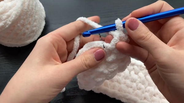 - In the last stitch, work an increase (2 single crochets in the same stitch).