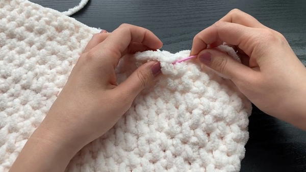 - Attach Straps: Fold the bag to locate the sides where the straps will be sewn. Use the yarn needle to securely attach the straps to the top edges of the bag.