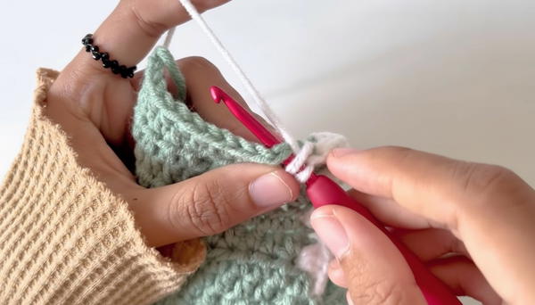 - In the last chain, work 3 HDC stitches in the same stitch to increase width.