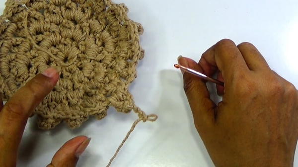 - In the next round, work two popcorn stitches in each chain space between clusters to increase size evenly.