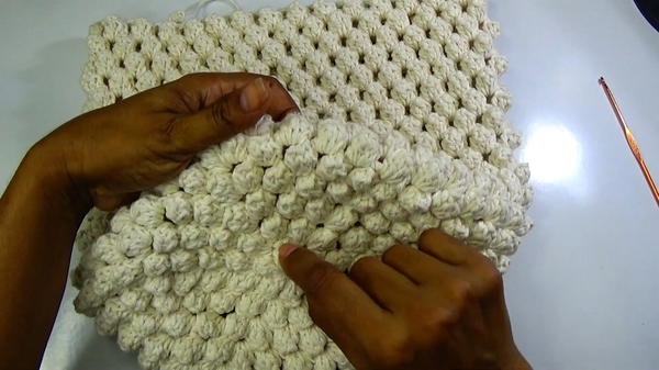 - After 5 increase rounds, continue popcorn rounds without increasing to build height, usually about 14 more rounds or as needed for desired bag length.