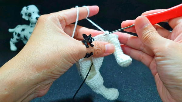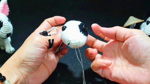 Take your time with the assembly. Proper alignment of the legs, head, and ears makes the puppy look balanced and realistic. Use contrasting yarn colors to create an adorable, eye-catching look.
