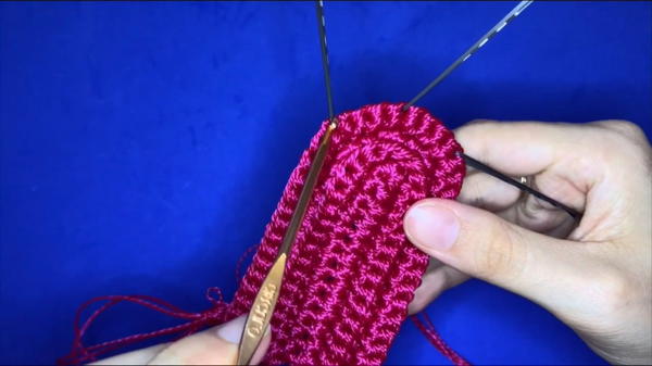- Work rows of single crochet going up the sides of the base, increasing stitches on curve ends for shaping.