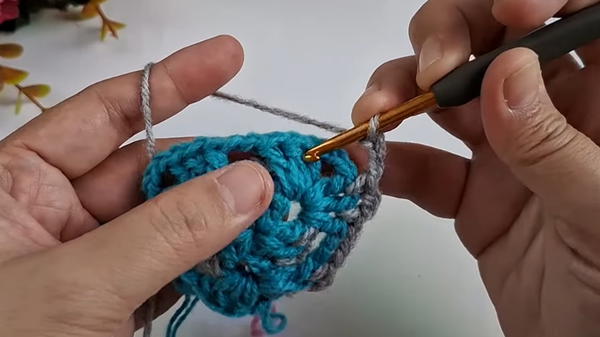 From this point onward, the pattern begins to look complete, with a satisfying balance of symmetry and detail. The final round brings everything together with single crochets in the contrasting color, adding a polished finish that enhances the overall appearance.