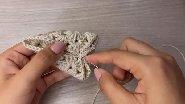 Level of Difficulty: Intermediate. While the granny square foundation is suitable for advanced beginners, the precise folding, complex internal sewing, and structural assembly require attention and careful manipulation, elevating the difficulty level.