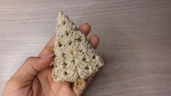 By folding and stitching a four-round granny square with precision, you have transformed it into a three-dimensional shape. This process ensures the ornament is both sturdy and delicate. The result is an elegant Christmas tree decoration perfect for the holiday season. This project is a quick and satisfying way to add a handmade, festive touch to your holiday decorations.