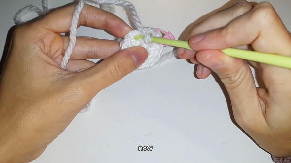 - Create a magic ring and chain 3. Crochet 2 double crochets into the ring, followed by another chain of 3, and slip stitch.