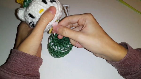 - Insert the yarn into the desired location, pull through to lock stitches, then finish by knotting and hiding the ends inside the head.