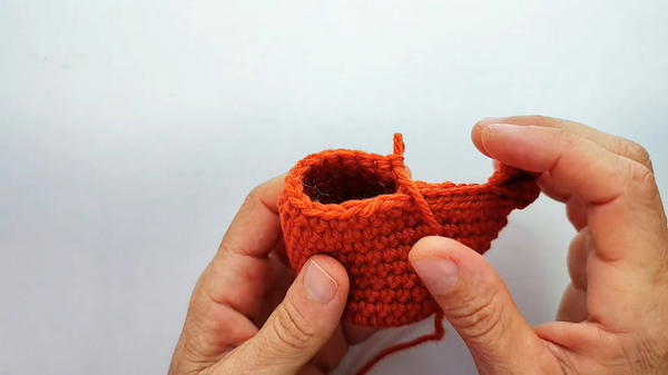 Marcela suggests paying close attention to the placement of the keychain ring. Because the front of the hen is heavier than the back, she recommends attaching the metal ring right at the base of the neck. This ensures that the hen hangs straight rather than tilting forward when used as a keychain.