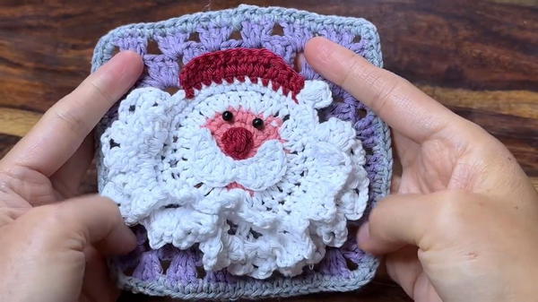 - Holiday Theme: The granny square features Santa Claus with a three-dimensional textured hat and beard.