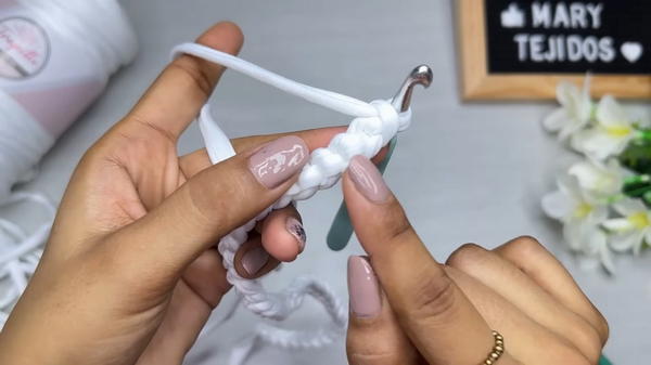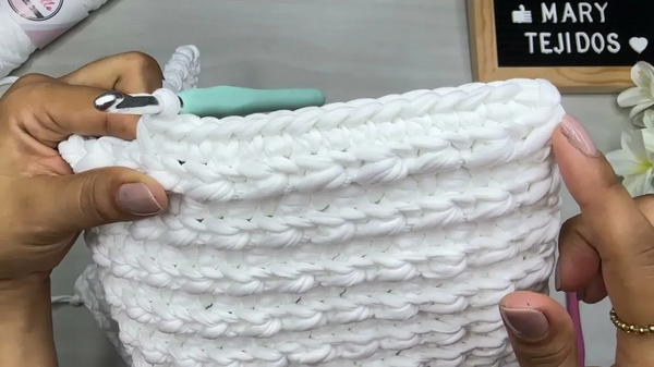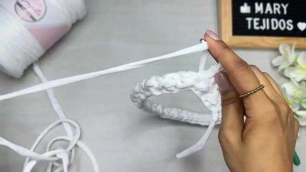 Yarn Preparation: Before starting, gently stretch the t-shirt yarn. This causes the edges to roll inward, forming a "tube" shape that hides the raw edges of the fabric and results in a cleaner stitch definition.
