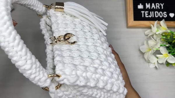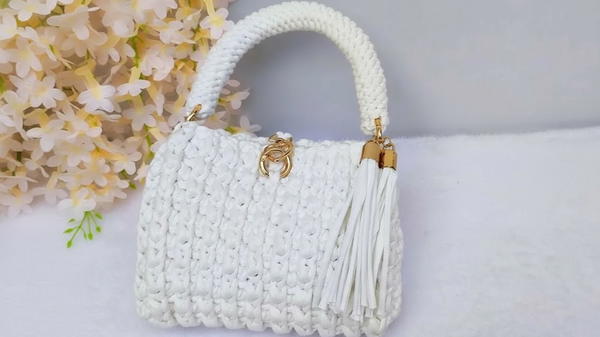 In this tutorial, Creator guides viewers through the creation of a beautiful, trend-forward crochet handbag using "trapillo pluma" (feather-light t-shirt yarn). The bag features a unique fantasy stitch that combines half double crochets and slip stitches, resulting in a textured, high-end look. The design is practical and spacious, featuring an ingenious handmade closure and decorative tassel details.