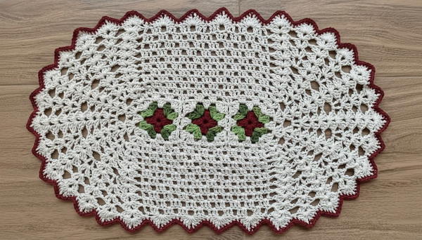 This crochet pattern combines simple clusters and fan stitches to craft enchanting little rose squares with leafy borders, perfect to brighten any space. Although intermediate, careful attention to joining and finishing makes this project satisfying and worth the effort.