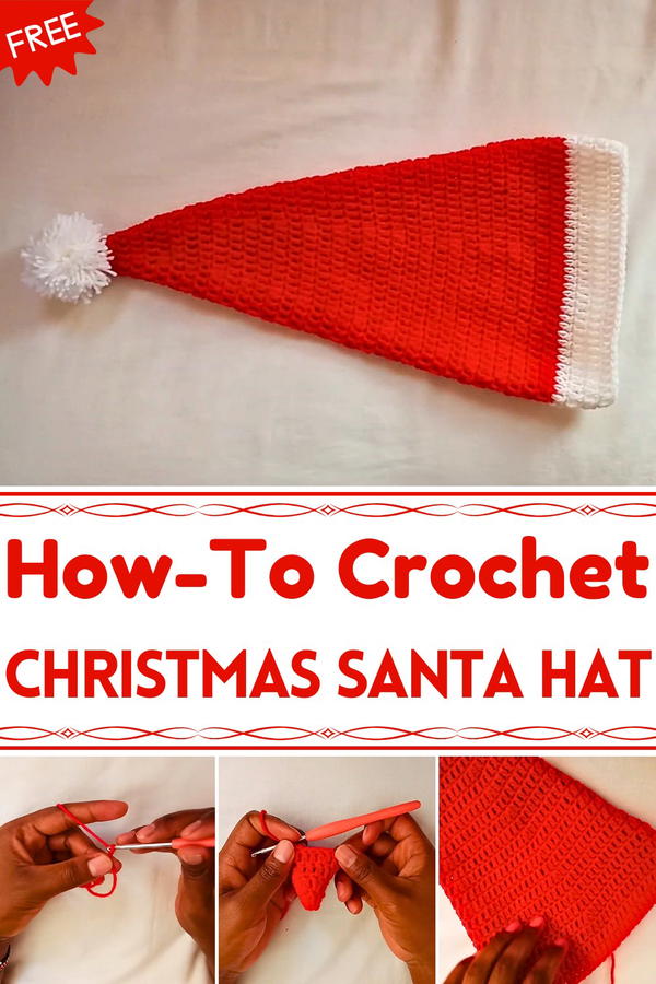 Top off the festivities with this Free Crochet Christmas Santa Hat Pattern, adding joyful charm and classic holiday spirit to your seasonal style.