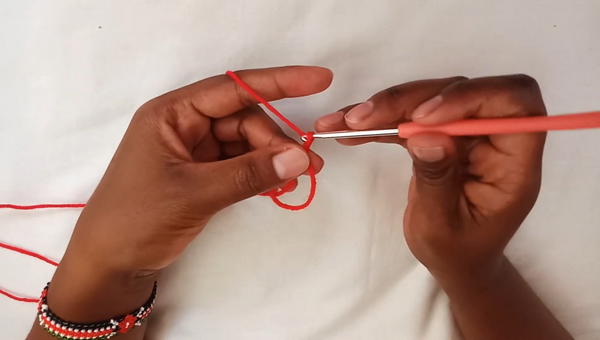 - Wrap the yarn around your fingers and pull the loop through to start your magic ring.