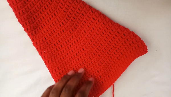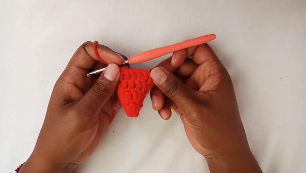 - Join the last row with a slip stitch, chain 1, and fasten off the red yarn.