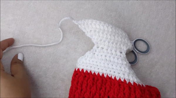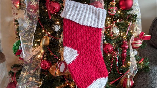 The final touch is a ribbed cuff, crocheted separately in back-loop stitches, offering a sophisticated finish and a seamless attachment to the stocking.