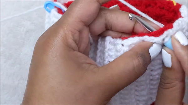 The journey to completing this stocking starts with the toe section, where smooth half double crochets are stitched in rounds, gradually shaping into a sturdy base.