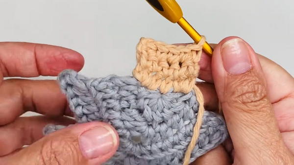- Chain 1, turn, and crochet 5 SC across. Repeat this once more to complete the trunk.