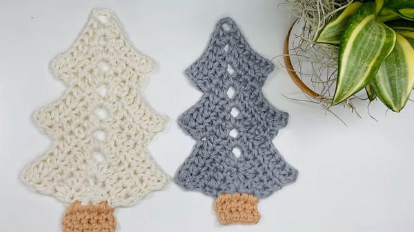 - Attach the brown yarn at the bottom of the tree with a slip stitch for the trunk.