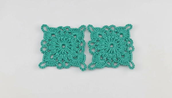 - Work one complete square first. End round with sl st and cut yarn.