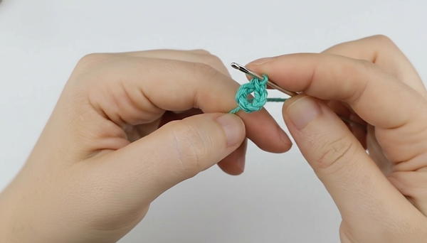 - Join with a sl st to the first ch to form a small ring.