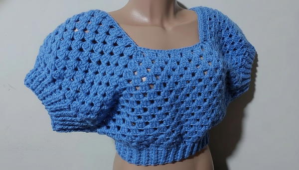Crocheted Puffy Sleeve Cropped Top Pattern