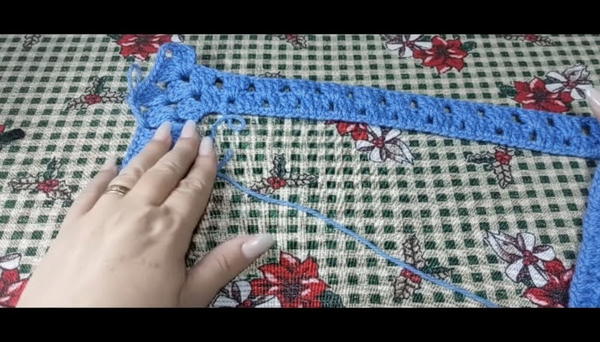 - Join chain ends gently to form a large rectangle (to be folded into top). Join with a sl st to the first chain to form circle.