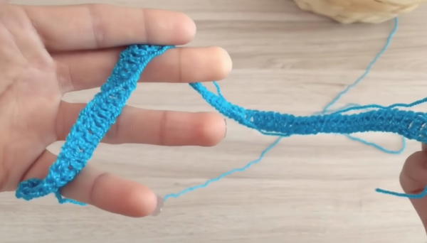 - Continue this sequence for 26 rows or until the strap measures approximately 21 cm.